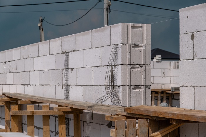 - Армування. Газобетонні стіни, особливо якщо вони довгі, потребують армування. Арматура допомагає розподілити навантаження по всій довжині стіни, запобігаючи появі тріщин. Рекомендується армувати кожен третій-четвертий ряд кладки, а також обов’язково під віконними та дверними отворами.