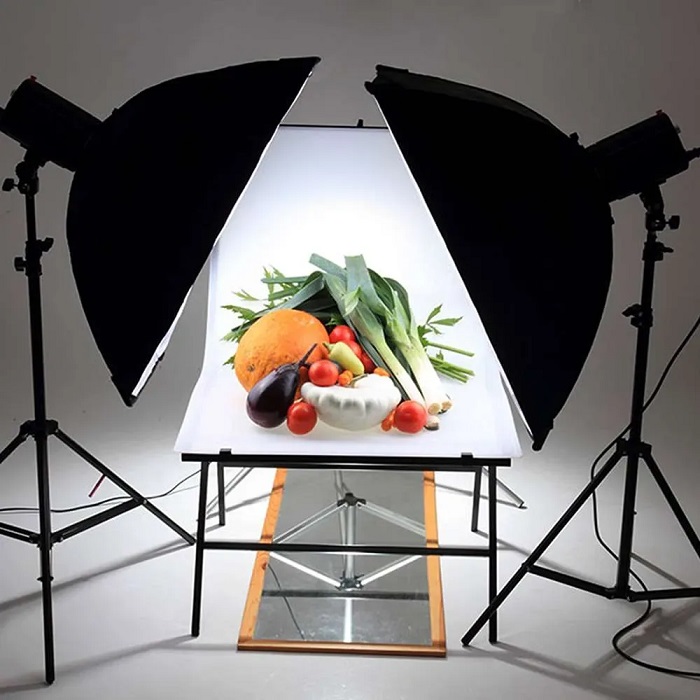 - Постановка світла — використання софтбоксів та відбивачів для рівномірного освітлення без жорстких тіней.